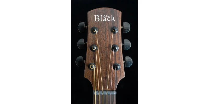 The Concert shaped body, or O, is the perfect balance for many players. You get the comfort of a smaller acoustic guitar yet more bottom end than a parlour. For many the dreadnought shape is just too big. The Adam Black O3 is ideal for smaller guitarists. Also, having a solid top means you get a lovely rich sound from it as well. Cheaper instruments tend to be made from all laminated plywood. The O 3 is a good level up from this. This is down to the inclusion solid spruce top. Standard bracing aid deliver warm, rich tones. Great for both strumming and finger picking. The semi satin finish covers the neck and body. You don’t get any of the stickiness that you would from a glossed instrument say. The neck has been fitted with a rosewood fretboard. Another neat touch is the inclusion of black hardware. The machine heads, nut, bridge pins and saddle are all finished in black.