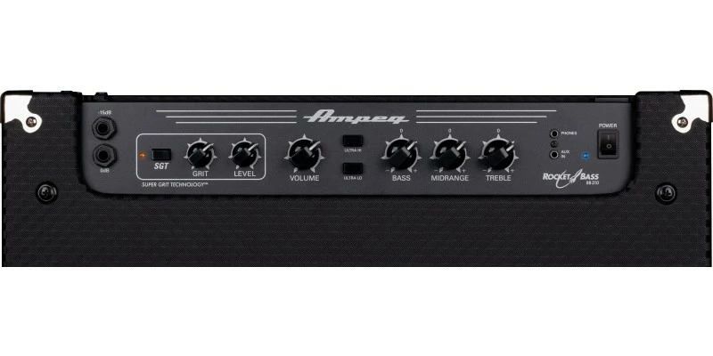 The 500-watt RB-210 is the ideal portable gigging amp. Dual custom 10″ Eminence speakers coupled with a mutable high-frequency horn reproduce a wide range of bass sounds, while classic Ampeg 3-band EQ, Ultra Hi/Ultra Lo switches, and the new Super Grit Technology overdrive circuit enable you to dial in your ideal tone. An effects loop, an auxiliary input, a headphone output, an extension speaker output, and an XLR direct output for connecting to a P.A. or recorder complete the package.