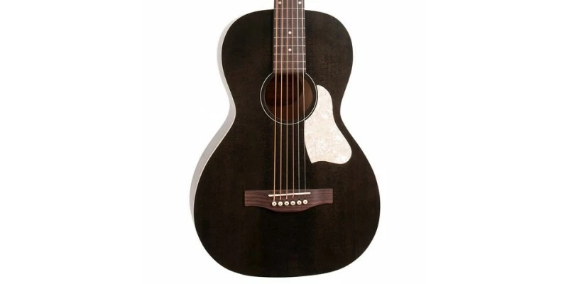 The Art & Lutherie Roadhouse Parlor Guitar in Faded Black includes Fishman Sonitone electronics.