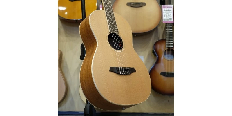 This Auden York model is a hybrid nylon string guitar, based on the Auden Julia 00 model. Though its body size is the same as the Julia, its bracing has been comprehensively adapted to accomodate the subtleties and lighter strain of the nylon strings. This, combined with a 12th fret neck join, results in a guitar with wonderful tonal nuance, responsive to the lightest touch. Considering the traditional 12th fret join, you might expect a traditionally wide classical neck, but here the acoustic guitarist is in for a pleasant surprise. A petite (for a nylon string guitar) 45mm nut fits easily in the hand, while a gentle 16โ radius allows the fretboard to fall naturally under the fingers. The result is an immediately familiar playing experience to complement the bodyโs mellow tone – the best of both worlds!