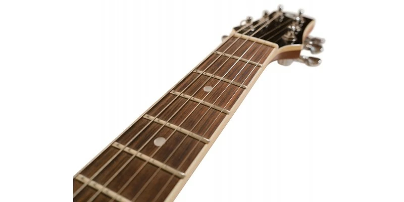 - High quality materials are used throughout, including the single-piece Okoume body and neck with set neck construction.