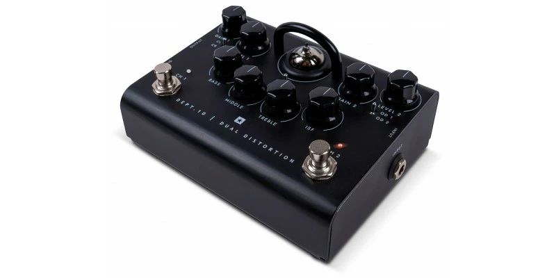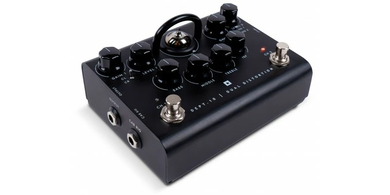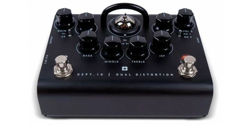 For those requiring higher gain, the Blackstar Dept. 10 Dual Distortion takes things up a notch. This is a formidable-sounding valve distortion pedal with a world-class valve recording preamp. It packs 3 crunch/overdrive voices alongside the clean channel, Blackstarโs patented ISF control, low latency USB, XLR out and Dept. 10โs proprietary Cab Rig simulator technology.