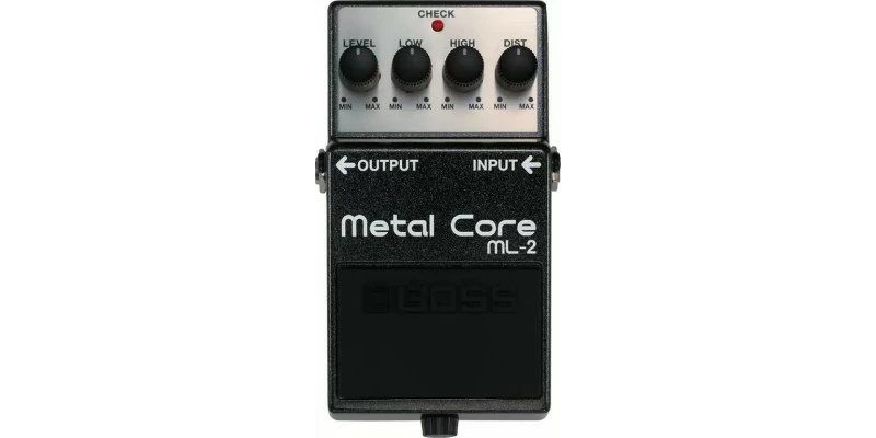The heaviest distortion Boss Pedals have ever made in fact. The Boss ML2 takes no prisoners when it comes to producing thick, saturated distortion and gain. It has a modern sound and will suit those looking for a sharp distorted sound. The controls of the effects pedal lend itself perfectly to sculpting 7 and 8 string guitar tones. The Boss ML-2 Metal Core is ideal for those wanting buckets of modern distortion.