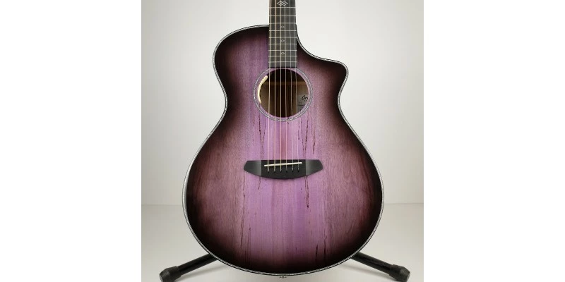 The Breedlove Oregon Concert CE is here presented in a limited edition Blackberry finish with solid Myrtlewood top, back and sides. This highly limited guitar is completely unique, with a subtle purple burst which has the benefit of allowing those stunning Myrtlewood tonewoods to show through. If you’re looking for a high end acoustic guitar which plays beautifully and looks like no other, this is the one for you!