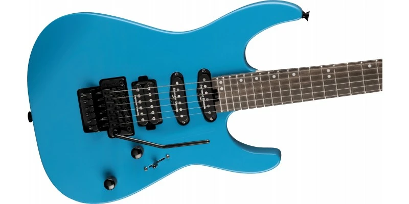 The Charvel Pro Mod DK24 HSS FR E is here presented in Infinity Blue with Floyd Rose tremolo system. The Pro Mod DK24 is a shredder’s dream, fitted with a custom Seymour Duncan® Full Shred SH-10B in the bridge, complemented by two Seymour Duncan® Custom Flat Strat SSL-6 RWRP Single Coils. The neck is called Speed, and not without reason. Rolled fretboard edges further ensure progress across the ‘board is entirely unhindered. Roasted maple means it feels silky smooth. The Floyd Rose Bridge facilitates all the tricks, while locking machines make string changes a cinch.