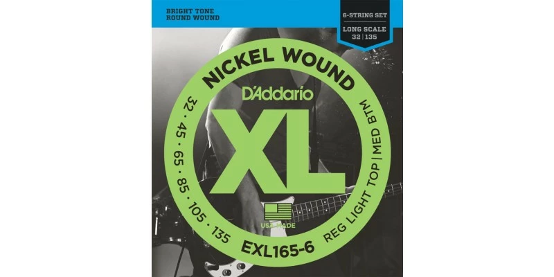 EXL165-6 is the 6-string version of the most popular D’Addario hybrid bass set which combines the high strings from an EXL170 (.45 and .60) with the low strings from an EXL160 (.85 and .105). With the addition of the .135 Low B string, and .032 C, this set is optimal for players looking for the ideal combination of comfortable playing tension with booming, tight low end. Fits basses with a string scale length of up to 36 1/4 inches.