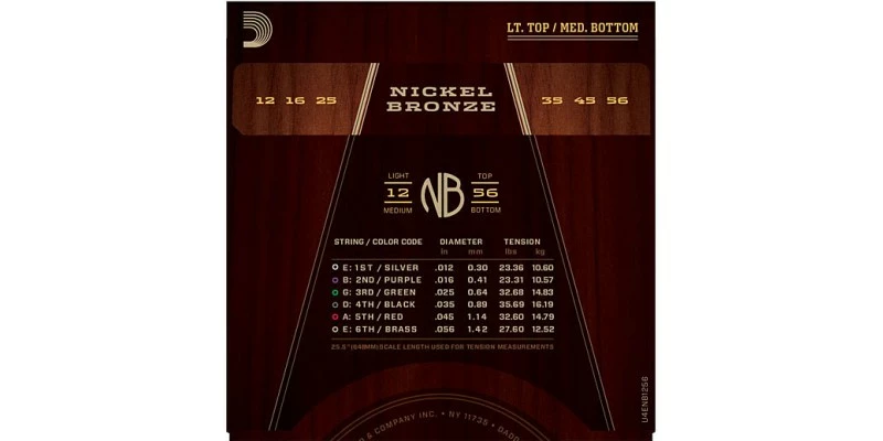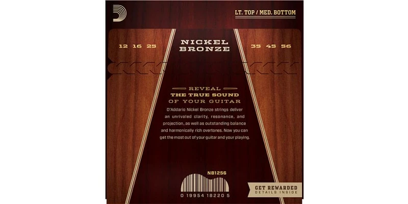 The Light Top / Medium Bottom D’Addario NB1256 Nickel Bronze Wound Strings have brilliant clarity, resonance and projection.