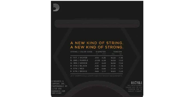 The Daddario NYXL1046BT electric guitar strings are super stable for tuning. The D’addario NYXL strings are far tougher than a regular set of nickel strings. This means you can really dig in and strum your guitar harder. According to tests they are twenty to forty percent tougher. This lets you bend them a whole lot more. Even when you are bending a note two steps higher they are at less than seventy five percent of their breaking point. The D’Addario NYXL1046BT are bright but not harsh. They will get the very best our of your guitar and pickups. They do this by use of a reformulated nickel plated steel. This increases mid range and presence.Made in the USA, this set of 6 electric guitar strings will liven up any guitar.