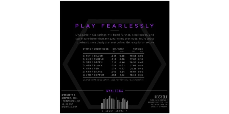 THE D’ADDARIO NYXL1164 7 STRING SET OF GUITAR STRINGS LET YOU BEND FURTHER AND SOUND EVEN BETTER.