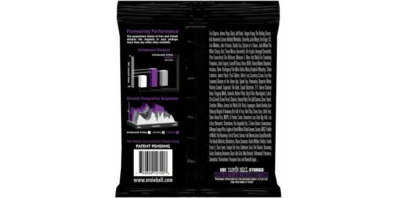 Ernie Ball Cobalt Power Slinky guitar strings are made from a special type of alloy which is attracted to an electric guitars pickup magnets more so than traditional guitar string materials.