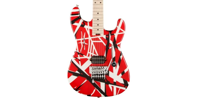 Based on Eddie’s famous striped guitar, the EVH Striped Seriesย Red with Black guitar has no scratchplate with just the direct mount humbucker. The double locking trem consists of a Floyd Rose locking nut and an EVH-branded Floyd Rose locking tremolo with the handy EVH D-Tuna installed on the low E string. The EVH D-Tuna allows you to drop the low E to a D without the hassle of undoing the locking nuts and retuning the whole guitar, drop D in an instant!
