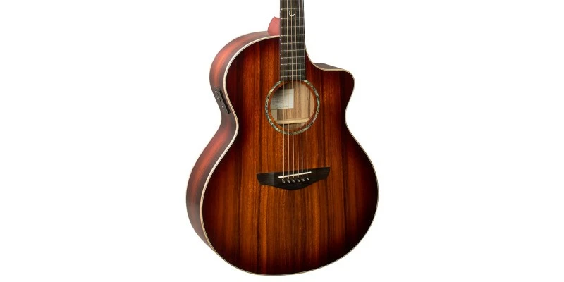 Set apart by its use of solid Javanese Trembesi for both the soundboard and back and sides wood, the Faith FNCEBMB Blood Moon Neptune Cutaway is a truly eye-catching and ear-pleasing guitar. It comes fitted with high quality Fishman INK3 preamp and Fishman Sonicore undersaddle pickup, allowing it to perform equally well plugged in. It comes supplied with a Faith-branded hard case.