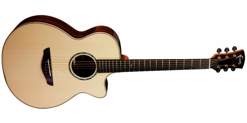 Faith HiGloss series guitars use a gloss-lacquered Solid Engelmann Spruce top matched to HiGloss finished Solid Rosewood on the back and sides. The classic combination of Spruce and Rosewood delivers a bright and harmonically rich timbre. Faith HiGloss guitars are bound with Solid Flamed Maple and feature Macassan Ebony fingerboards, headplates, heelplates, bridges and bridge pins.