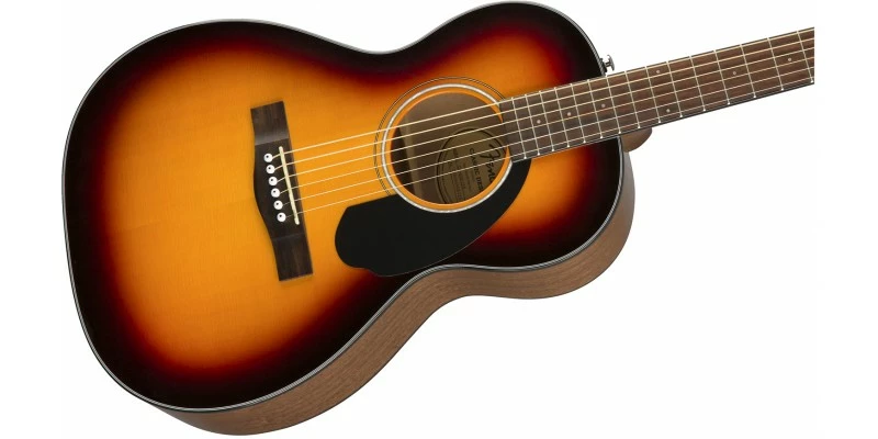 The Sunburst Fender CP-60S features a smaller parlour body and a solid spruce top.