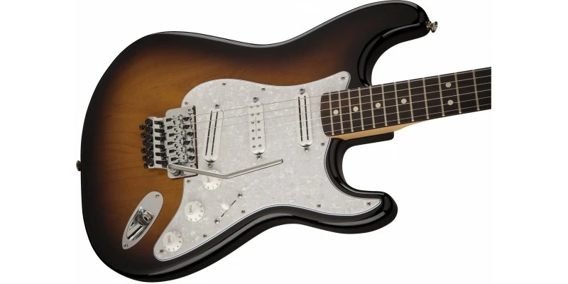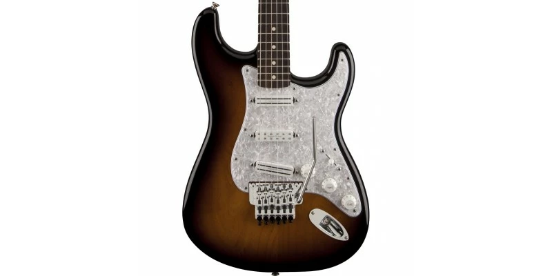 The Fender Dave Murray Strat has a Rosewood fingerboard with a compound-radius of 9.5″-14″. This allows for a low action and effortless playability all along the neck. A Floyd Rose Original Double Locking 2-Point Tremolo means you won’t need to worry about re-tuning your guitar after every dive of the trem. It’s a tried and tested system that offers rock solid tuning stability. The Alder body features a classic 2-Colour Sunburst finish and 4-Ply White Pearloid pickguard.