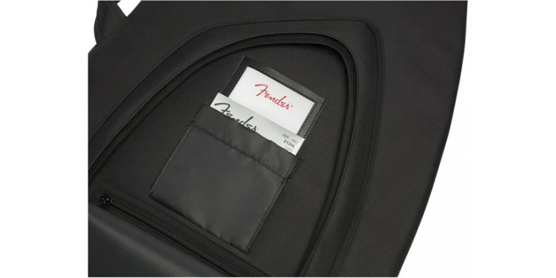 The 610 interior is filled with 10mm padding and lined with soft touch microfiber that keeps your instrument secure while preventing potential finish damage. The Fender FEJ-610 gig bag also comes with a comfortable two-piece handle and ergonomic air mesh backpack straps with easily adjustable ladder lock buckles, so you can comfortably carry your instrument without unnecessary physical strain. Plus, the front storage pocket offers additional storage space for small accessories and a business card window.