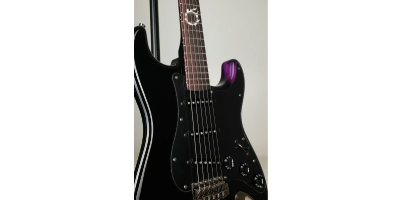 The guitar features a maple neck with a slim βModern Cβ shape that fits comfortably in the hand. A 9.5β radius rosewood fingerboard with narrow tall frets affords precise fretting and choke-free bends. Crystalline, warm and touch-sensitive tones are made possible via a trio of V-Mod single-coil Strat pickups while a βlimit breakβ (a special ability used in FFXIV) switch takes the form of a push-push tone pot that puts the bridge and middle pickups in series for beefier sounds.