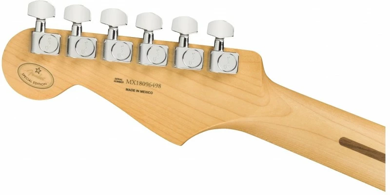 The updated 2-point tremolo design has smoother travel for enhanced playing feel while simultaneously giving you rock-solid tuning stability since there’s less friction against the posts. Other features include master volume and tone controls, a 5-way pickup switch, 3-ply pickguard, synthetic bone nut, dual-wing string tree, sealed tuning machines and four-bolt “F”-stamped neck plate that marks this instrument as the real deal – as Fender as it gets.