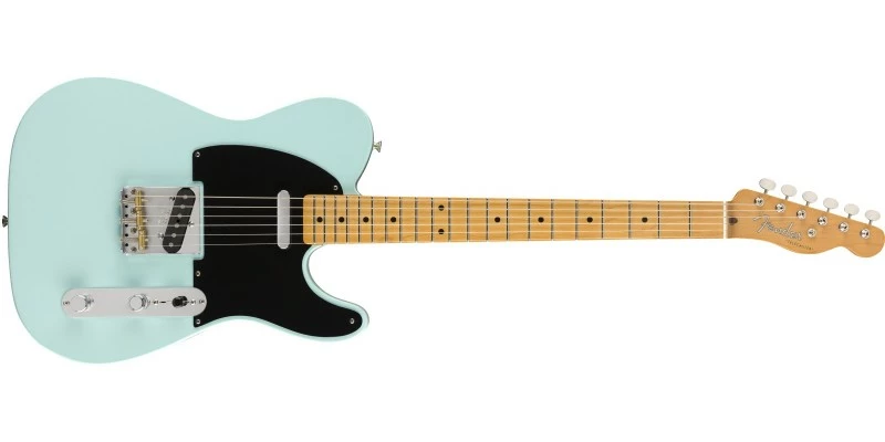 The Fender Vintera 50s Telecaster Modified is here presented in a Daphne Blue finish, with black pickguard. Designed from the ground up to appeal to players who demand both classic looks and modern performance, the Vintera 50s Telecaster Modified is the best of both worlds.
