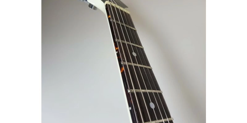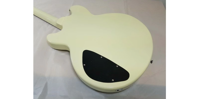 The Fret-King Elise in Vintage White is from the Black Label Range of instruments and is a brand new colour for 2016. The Fret-King Elise comes shipped in a luxury gig bag and will be setup to perfection by ourselves. Like all Fret-King guitars, the Elise has top quality features such as Wilkinson hardware and pickups. 2 classic humbuckers wired to the Vari-coil control allows you to access chiming single coil tones from this semi-hollow electric guitar. Available to buy online for super fast delivery across the UK and Ireland. We also ship worldwide at very competitive rates.