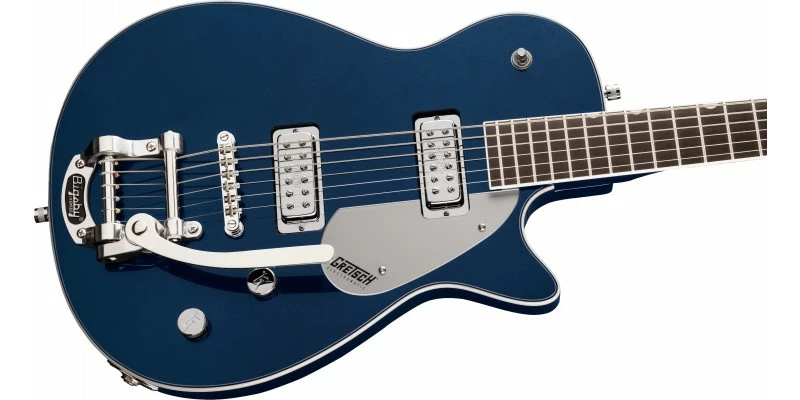 Crafted with unmistakable Gretsch sound, style and playability, the G5260T Electromatic Jet Baritone with Bigsby comes in a Midnight Sapphire finish with black pickguard.