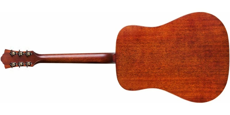 The Guild D20 Natural, is a dreadnought acoustic guitar built with solid mahogany top, back, and sides. First introduced to the Guild line in 1968, this model features a rosewood bridge and fingerboard, bone nut and saddle, and an extremely light satin finish that allows this guitar to truly sing. The Guild D-20โs modest appointments include a vintage style rosette and Guildโs peak logo inlaid in mother-of-pearl on the headstock. Each Guild D20 comes with a hand-signed, numbered certificate of authenticity, and ships with a hardshell case.