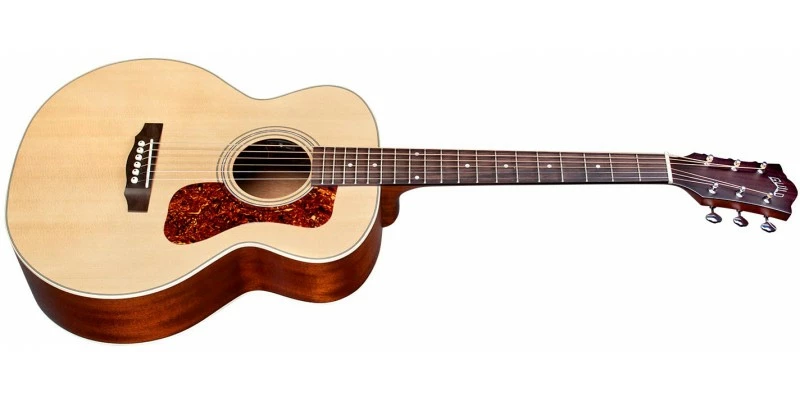 The Guild Jumbo Junior MH Mahogany Westerly is a travel size acoustic guitar. with its solid spruce top and built in pickup yo are getting a lot for your money. Buy online today from Guitar.co.uk or visit our Glasgow shop. Fast UK dispatch and delivery service.