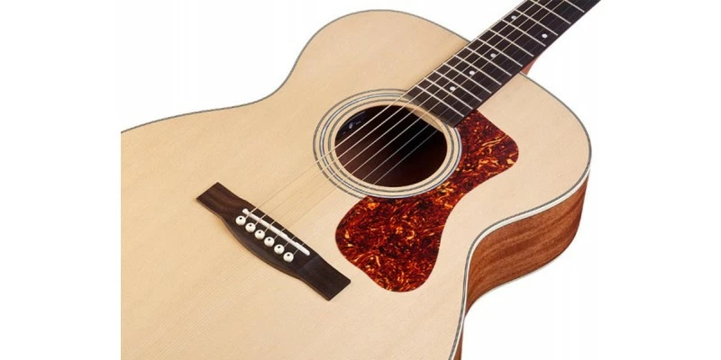 The Guild M-240E Westerly Archback has a tactile natural satin finish. It featuresa solid spruce top with a laminated arched mahogany back. It is a fantastic value acoustic guitar with a concert sized body. Buy online today from Guitar.co.uk or visit our Glasgow shop. Fast UK dispatch and delivery service.