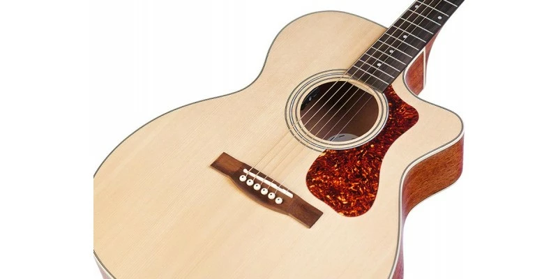 The Guild OM-240CE Westerly Archback features a natural satin finish. This great value Cutaway Orchestra acoustic guitar has been fitted with a pickup. Its solid spruce top has been matched up with a laminated arched mahogany back. Buy online today from Guitar.co.uk or visit our Glasgow shop. Fast UK dispatch and delivery service.