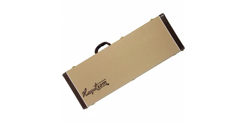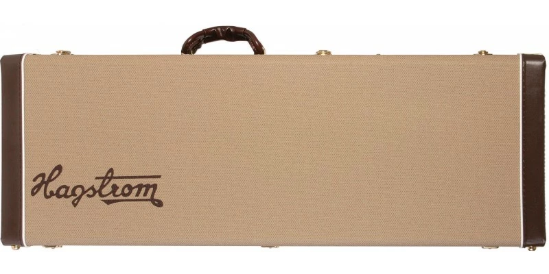 Hagstrom hardshell cases are manufactured using high grade plywood and feature heavy-duty gold-plated latches, a comfortable ergonomically soft handle, and a deep plush protective lining which reduces interior movement. The case exterior is made of durable vintage tan Tolex, with a gracefully emblazoned Hagstrom logo. Seams are reinforced with heavy brown stitching, with tasteful leatherette stitched sides.