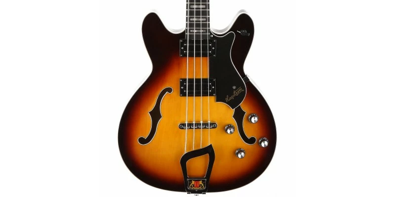 Hagstrom Viking Bass in Tobacco Sunburst is semi-hollow with a 30.75 inch scale.