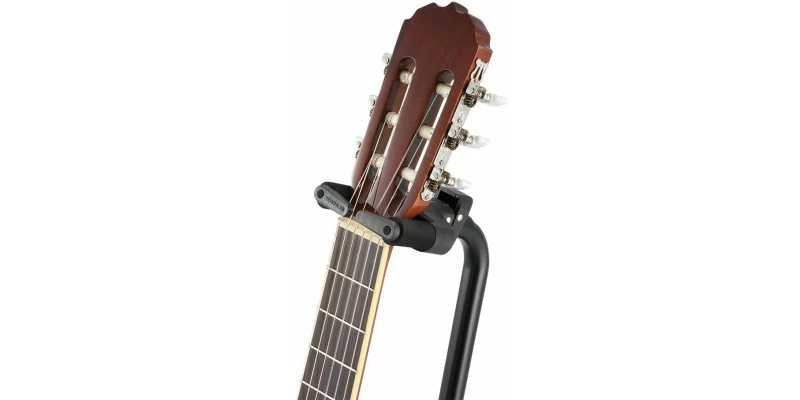 This GS414B PLUS model has been substantially upgraded to fit a wider range of neck sizes. It includes Narrow Instrument Neck Adjustment adaptors, allowing the stand to comfortably accomodate even the smallest of guitars and ukuleles.