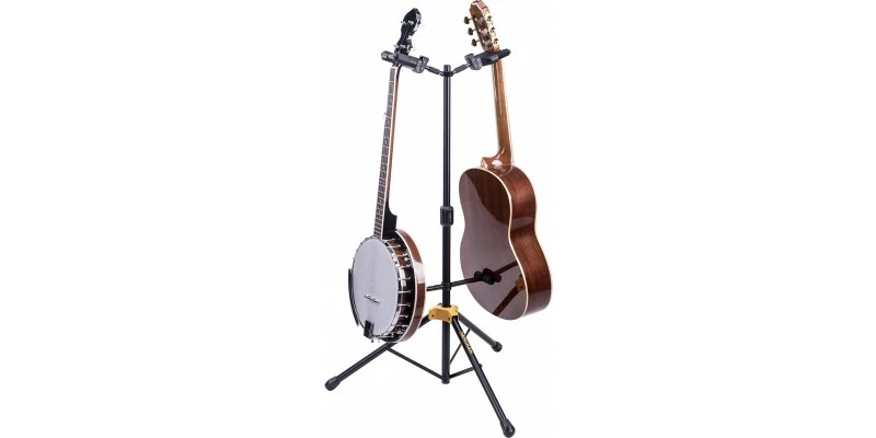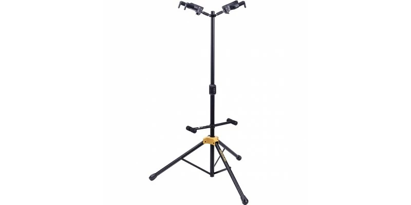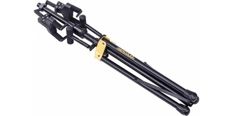The HERCULES Double Guitar Stand GS422B PLUS accommodates two instruments and features the foldable Auto Grip System (AGS) yokes, Instant Height Adjustment Clutch, Specially Formulated Foam (SFF) rubber contacts and the adjustable back rests. Two folding built-in Auto Grip Systems safely lock the instrument(s) in place. The AGS yoke is designed to accommodate more guitar neck sizes from 40 mm – 52 mm (1.57” – 2.05”) including classic, acoustic, electric and bass guitars.
