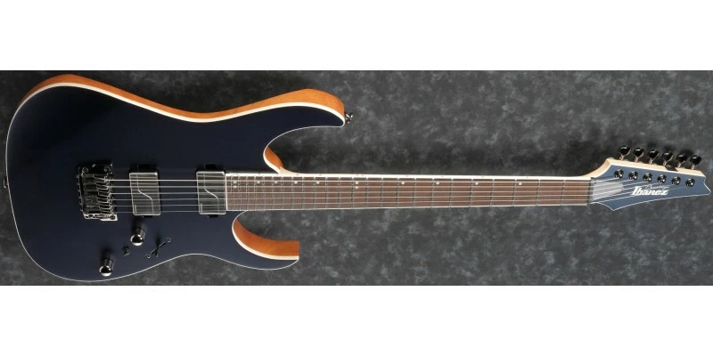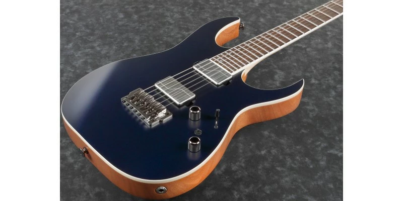 This RG5121 features a Macassar Ebony fretboard and African Mahogany body. It has a beautiful colour contrast between the Dark Tide Blue Flat finish on the top and the Natural flat finish on the body sides and back.