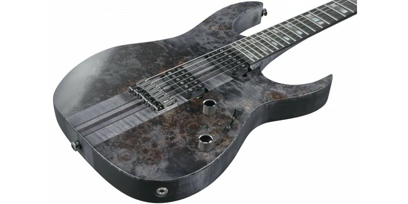 This limited edition Ibanez Premium RGT1221PB really stands out with its figured Burl Poplar top with Deep Twilight Flat finish. Ibanez have really gone all out with this one, fitting stainless steel frets, which have additionally benefitted from hand rolled edges. The fretboard itself is ebony, while the through-neck comprises 7 separate pieces of Maple and Walnut. A feast for the eyes, and an absolute pleasure to play.
