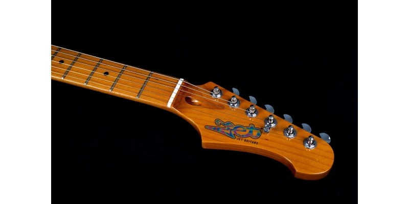 With a lightweight and resonant Basswood body, combined with a Roasted Canadian Maple neck / fretboard, the Jet JS-400 gets off to a very good start. This guitar really has looks to die for, with a rich gloss finish showing off the Sunburst body and Roasted neck to full effect. Aged plastic knobs and pickup covers give it a vintage look which complements the caramel hue of the neck and multi-ply Tortoiseshell pickguard.