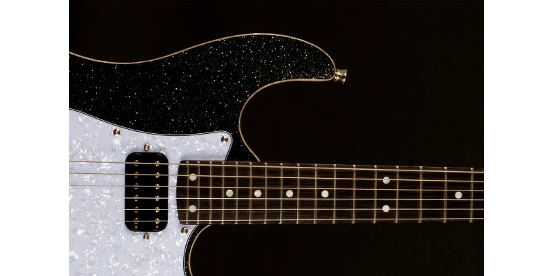 With a lightweight and resonant Basswood body combined with a Roasted Canadian Maple neck, the Jet JS-500 gets off to a very good start. This guitar really has looks to die for, with a rich gloss Black Sparkle finish and body-matching headstock. Black knobs and pickup covers are offset by the Pearloid pickguard for a premium look which complements the caramel hue of the neck and black mixed Ebony fretboard.
