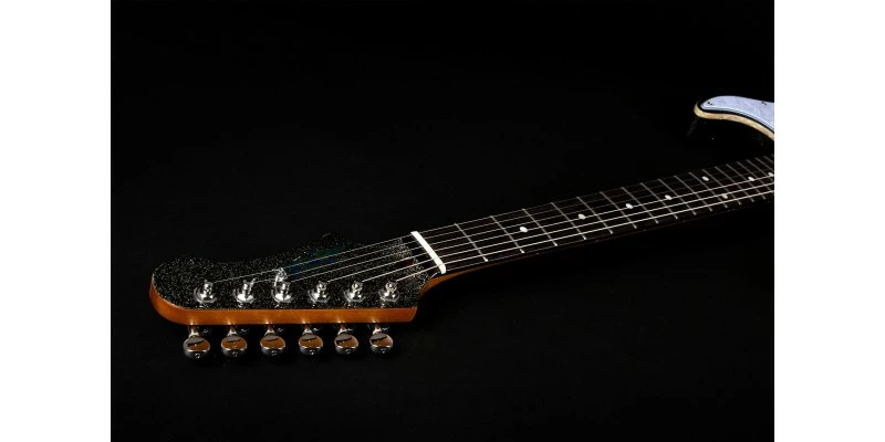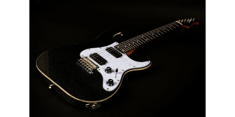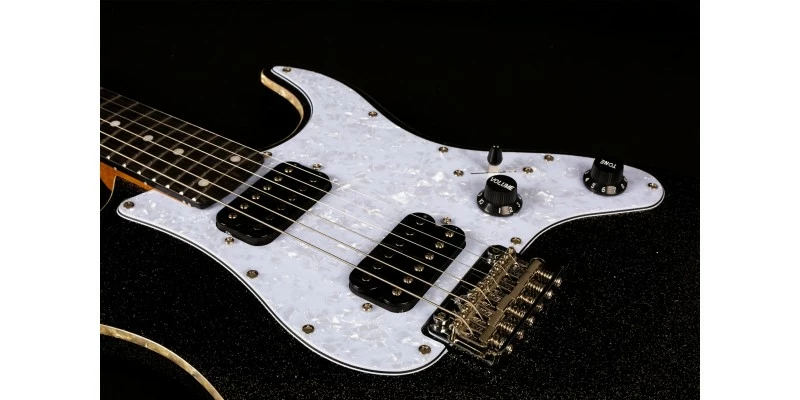 Fitting into the โSuper Stratโ mould at a phenomenal price point, the Jet JS-500 is here presented in Black Sparkle with body-matching headstock. This guitar comes with a 24-fret mixed ebony fretboard, satin-finished roasted maple neck, locking tuners, and two Korean-made Alnico humbucking pickups. As with all Jet guitars, the JS-500 plays, feels and sounds like a much more expensive instrument, additionally coming with an upgraded with a 2-Point Wilkinson Tremolo system, Pearloid Pickguard and Pearloid body binding.
