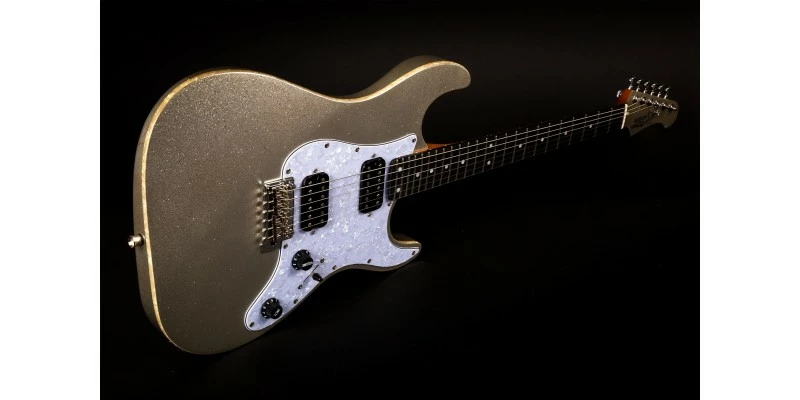 Fitting into the โSuper Stratโ mould at a phenomenal price point, the Jet JS-500 is here presented in Silver Sparkle with body-matching headstock. This guitar comes with a 24-fret mixed ebony fretboard, satin-finished roasted maple neck, locking tuners, and two Korean-made Alnico humbucking pickups. As with all Jet guitars, the JS-500 plays, feels and sounds like a much more expensive instrument, additionally coming with an upgraded with a 2-Point Wilkinson Tremolo system, Pearloid Pickguard and Pearloid body binding.