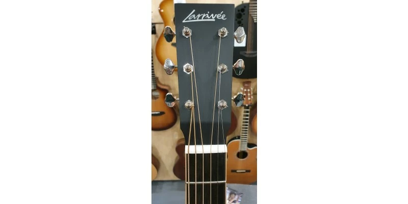 Sitka Spruce and Mahogany are staples of acoustic guitar construction. The robust and clean response produced by this tone wood combination particularly endears itself to performing musicians. Larriveeโs “Scalloped Parabolic Hybrid” bracing design brings the best of this already-outstanding combination. A non-symmetrical scalloped lateral cross-bracing pattern has been blended with Larriveeโs tried and true balanced X-Brace system. The result is maximum strength using the least amount of material. It’s a build that allows even further vibration of the soundboard, while still offering a controlled dynamic bass response.