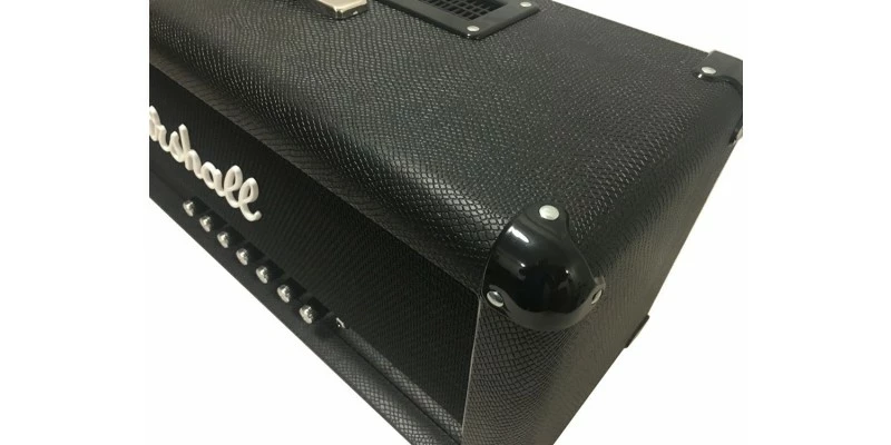This was the first amp in the lineup to feature Pentode/Triode Switching. The Master Volume Marshall 2555X Silver Jubilee Head has been created around the JCM800. 2203 and 2204 versions. With its three band EQ and three different gain modes, it was the most versatile guitar amplifier they had built yet. These are Clean, Rhythm Clip and Lead channels. The Lead Channel can be foot-swiched off and on. Although Marshall has a big name in over-driven tones this 2555 has some excellent clean tones. This modern version includes a few updates. Instead of the impedance switch on the back it comes with five different sockets. These range from 16 to 4 Ohms. The mains selector has also been removed. The Marshall 2555X has silver metal cap ends on the handle rather than black. The input jack is now metal rather that plastic. Mains and Standby switches are cosmetically slightly different too. This is now a production model and part of the Vintage Re-issue Series. However we have special ordered this head from the Marshall Design Store with a Black Snakeskin covering. It looks and sounds incredible!