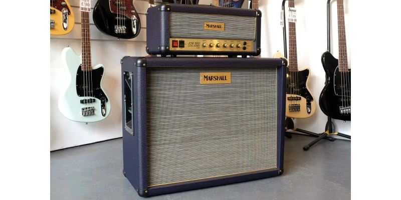 Here presented in an exclusive Design Store finish with Purple levant covering, this half stack pack includes the Marshall Studio Classic SC20H amp head, 1936G cab and a speaker cable: The perfect package if you want to recreate Marshallβs classic JCM800 2203 tone in your home or studio. Gold piping, Black/Gold Plexi logos and a Black/Gold amp handle complete the look.