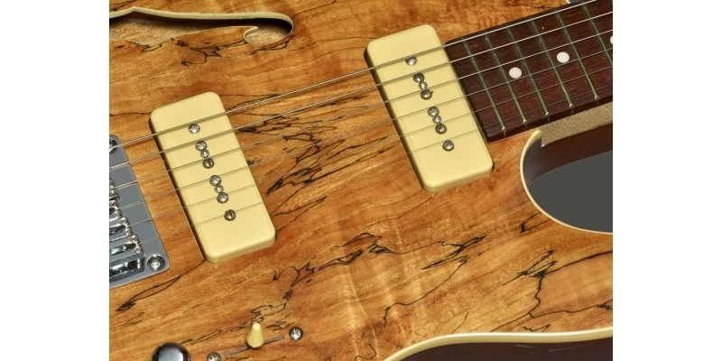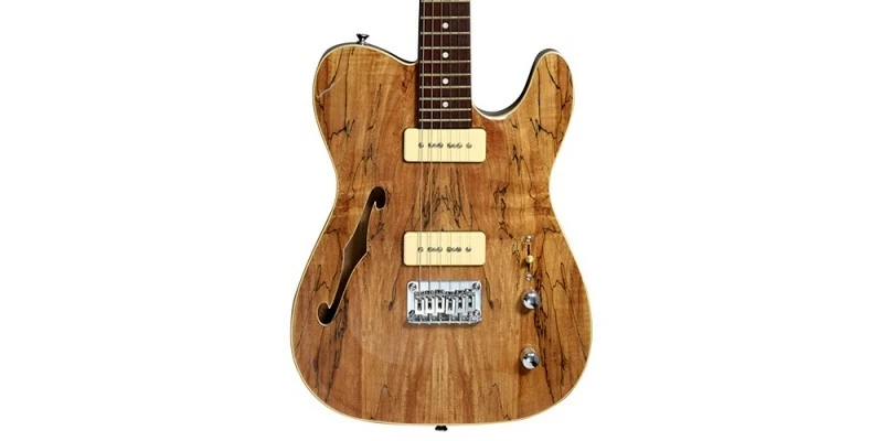 The Michael Kelly 59 Thinline is here presented in a natural Spalted Maple finish. This guitar combines boutique looks with tone defined by a chambered mahogany body and twin P90 single-coil pickups. Easy playability is assured, thanks to the modern โCโ Shape neck profile, while cream body binding completes the up-market aesthetic.