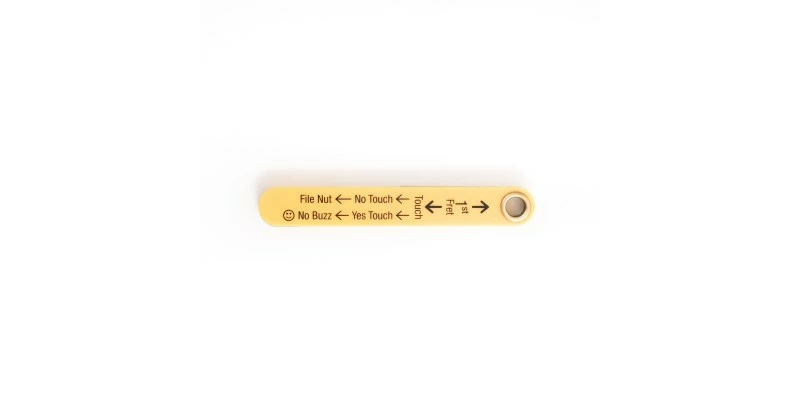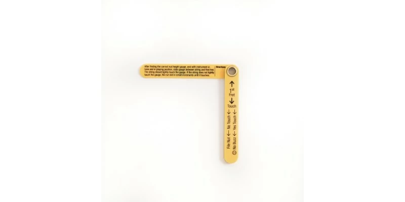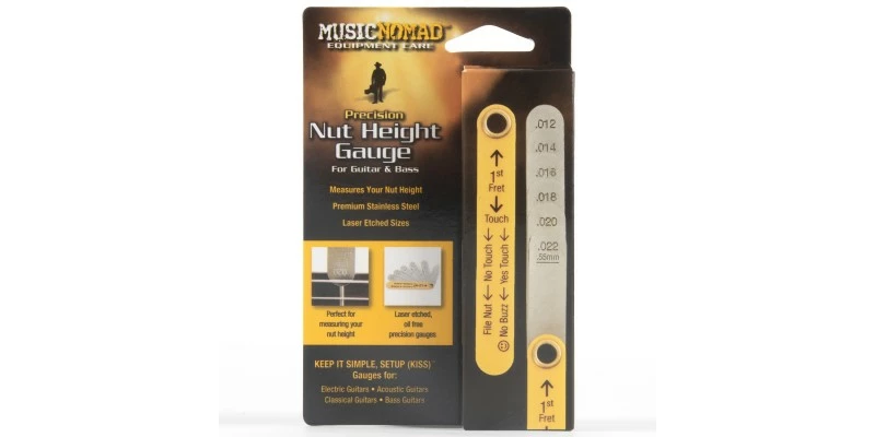 Being able to measure your string height at the nut is a critical step in the setup process. Music Nomadโs precision Nut Height Gauge will help you do it quickly & accurately. The gauge comes equipped with the 3 most common nut height sizes (.016โ, .018โ, .020โ) plus 3 additional sizes (.012โ, .014โ, .022โ) to accommodate a desire for lower action or a heavier pick attack. Instructions printed right on the handle makes it extremely easy to dial in your nut height.