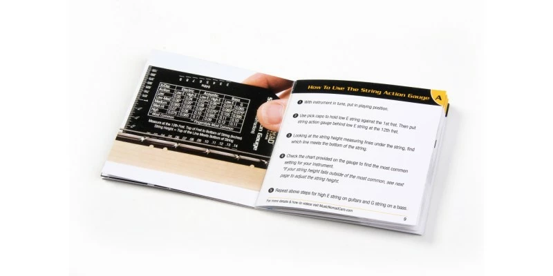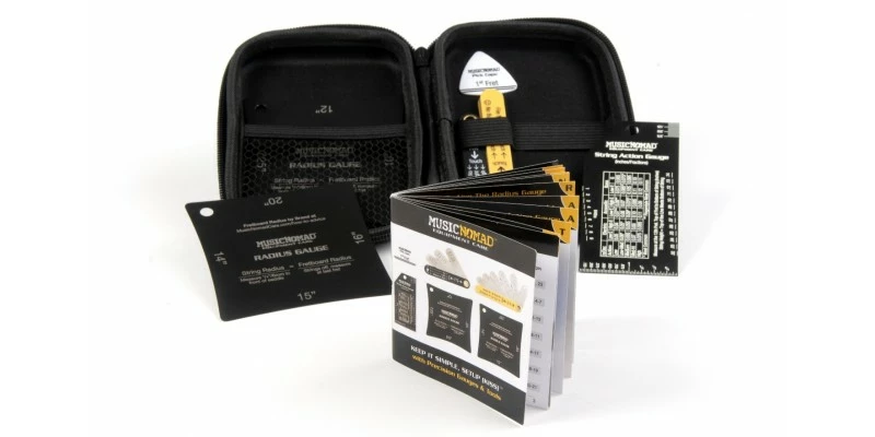 The Set includes: Truss Rod Gauge, Pick Capo, String Action Gauge, 2 Radius Gauges, & Nut Height Gauge. It even includes a 24 page instructional booklet & carrying case. That’s Music Nomad quality β raising the bar in equipment care.