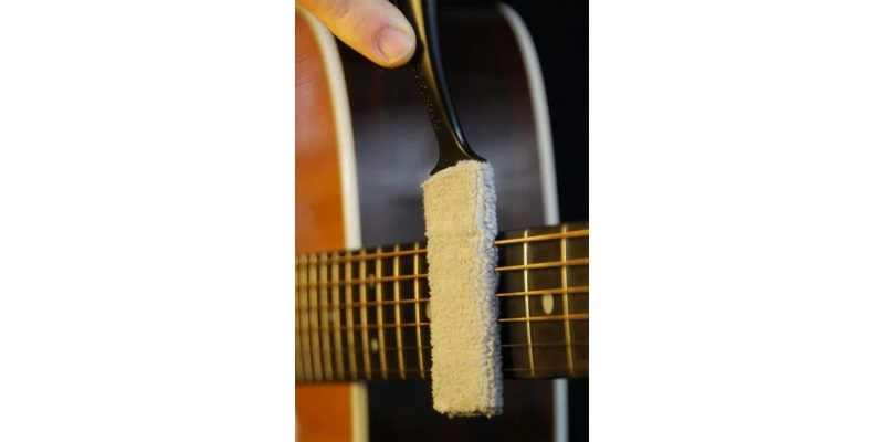 The Music Nomad Tool is an all in one string, surface and hardware cleaning tool. The premium quality washable microfibre pad cleans on top and underneath guitar strings in seconds. The 100% lint free microfibre pad protects frets and fretboard from getting damaged while at the same time cleaning them. Also, the microfibre pad quickly cleans dust, grime and fingerprints on the instruments body and hard to reach areas. Turn it around to use the super soft, natural brush fibres as a cleaner for dust buildup and care on the body, bridge, pickups, saddles, tuners, headstock and more. Cleaning off dust and grime is a must do before you apply any polish to avoid scratching the finish.