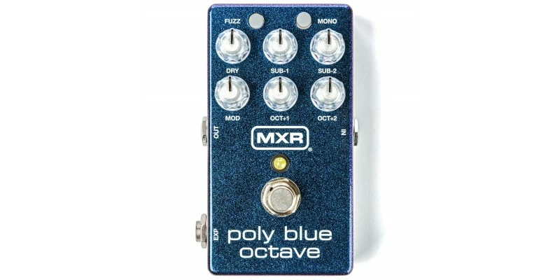Through the EXP jack, the MXR Poly Blue Octave Pedal allows you to control various settings with an expression pedal such as the Volume (X)โข8 Pedal or an off-board switch such as the MXR Tap Tempo Switch to sweep between two different knob and switch configurations or toggle the fuzz and mono modes on and off.