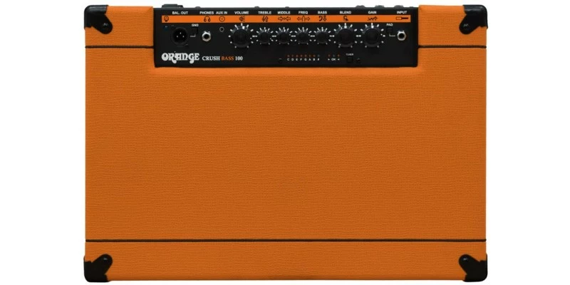 The Orange Crush Bass 100 features an active parametric EQ. Blend and Gain Controls.