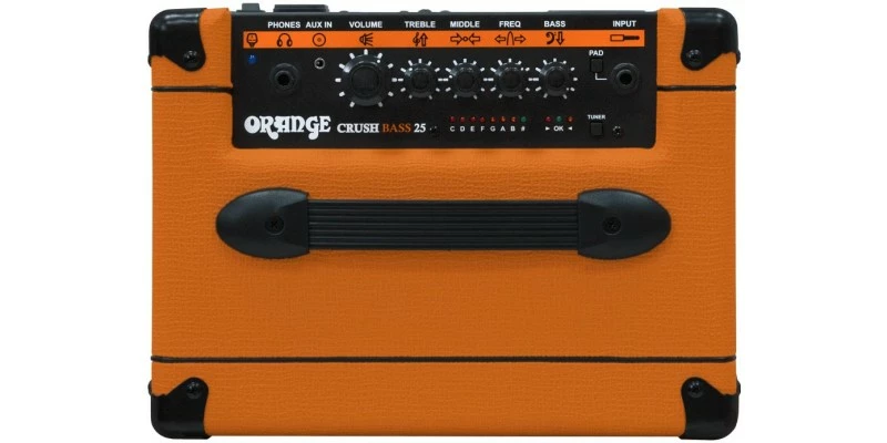 An EQ circuit on the Orange Crush 25 Bass has taken inspiration from their prestigious 4 Stroke amplifiers. It works around a parametric EQ. This delivers the bassist with greater versatility. The mid band range is wide, sweeping from 300Hz to 2.7kHz. The active circuitry on the Crush 25 Bass gives you up to 15dB of boost or cut in the mid and bass range. 20dB on the treble side.