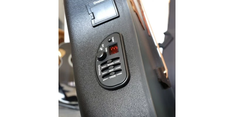 The Lyrachordยฎ composite, mid depth body is comfortable standing or sitting and provides excellent projection. A satin-finished neck, Ovangkol fretboard and bridge all combine to make playing effortless and responsive. The Celebrity Elite is equipped with the Ovation Slimline pickup and OP-4CT preamp system with a three-band EQ, volume/gain control, onboard tuner and low-battery light that make it easy to dial in your sound.